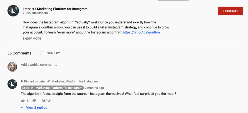 Much like on Instagram, the more engagement your YouTube content receives, the better it will perform and the more views it will receive.