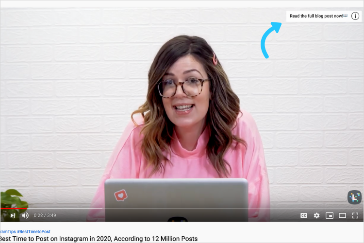 Consider prompting your viewers to click a pop-up card in your video script, or add in a custom graphic to draw even more attention to it.